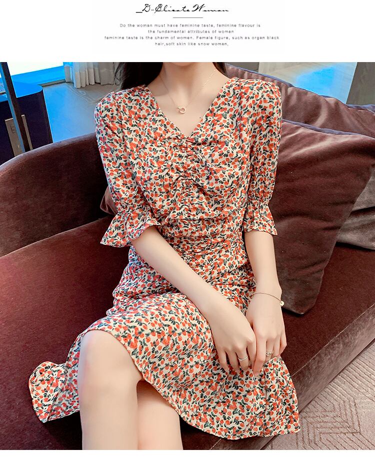 ワンピース フレアワンピース 膝上 五分袖 柄 春 夏 秋 裾フレア かわいい 大人可愛い きれいめ カジュアル 大人 上品 おしゃれ 大人女子 キュート ガーリー 主役級 存在感 Vネック ひざ丈 袖あり 5分袖 ボリューム袖 S M L XL 大きいサイズ 10代 20代 30代 40代 OL 通勤 学生 通学 デート お出かけ 女子会 着回し 普段使い 韓国系 ファッション コーデ スタイル プチプラ 送料無料 | Rena 韓国ファッション レディースアパレル