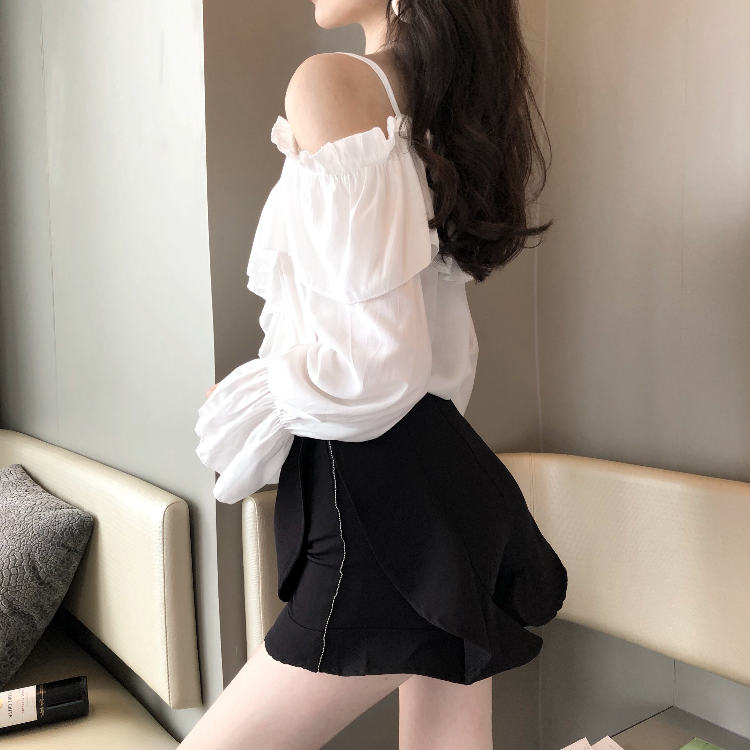 ブラウス 長袖 無地 春 夏 秋 フリル バックコンシャス かわいい 大人可愛い きれいめ シンプル カジュアル 大人 上品 おしゃれ かっこいい 大人女子 こなれ感 キュート ガーリー クール モード系 オフショルダー オフショル 白トップス 白 ホワイト 黒 ブラック モノトーン フリーサイズ 10代 20代 30代 40代 学生 通学 デート お出かけ 女子会 休日 イベント 旅行 着回し 普段使い 韓国系 ファッション コーデ モテ 送料無料 | Rena 韓国ファッション レディースアパレル