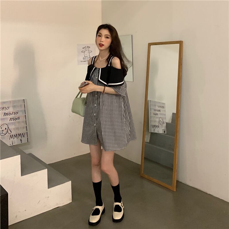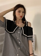 ワンピース シャツワンピース ミニ丈 五分袖 チェック 春 夏 秋 かわいい 大人可愛い きれいめ シンプル カジュアル おしゃれ 大人女子 こなれ感 ラブリー キュート ガーリー 個性的 主役級 存在感 オフショルダー オフショル 襟付き ミニ 5分袖 S M L XL 大きいサイズ 10代 20代 30代 学生 通学 デート お出かけ 女子会 イベント 旅行 着回し 普段使い 韓国系 ファッション コーデ 体系カバー 送料無料 | Rena 韓国ファッション レディースアパレル