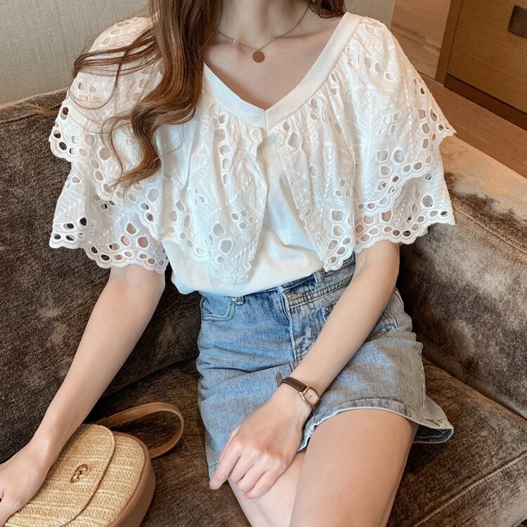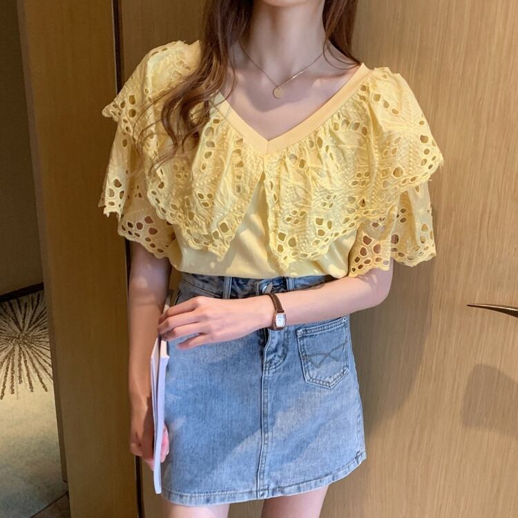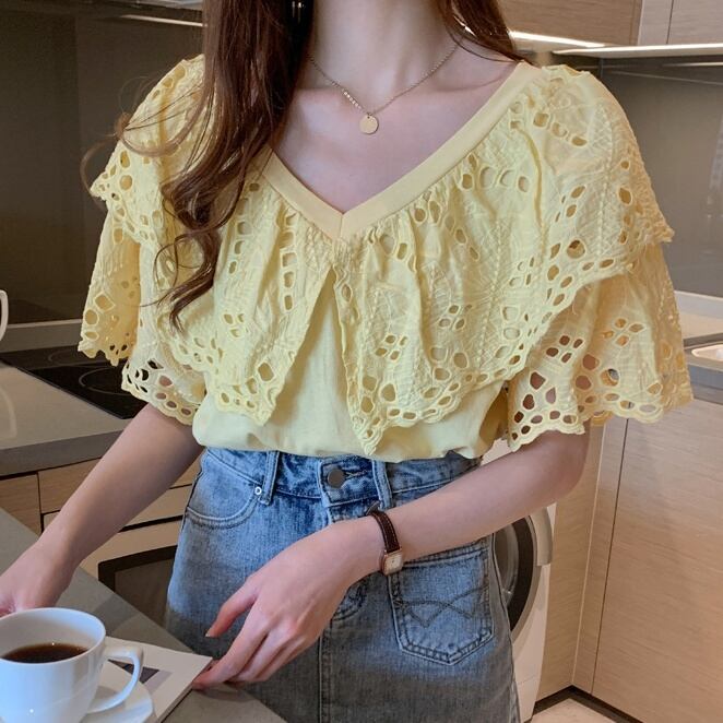 トップス レディース カットソー 五分袖 無地 春 夏 セミフレア レース かわいい 大人可愛い きれいめ シンプル カジュアル 大人 上品 おしゃれ お洒落 レトロ 大人可愛い 大人女子 ラブリー キュート ガーリー 個性的 Vネック 袖あり 白 ホワイト イエロー くすみカラー 大人カラー S M L XL 2XL 20代 30代 デート お出かけ 女子会 休日 着回し 普段使い 韓国 韓国系 オルチャン ファッション コーデ スタイル モテ 送料無料 トレンド 流行 インスタ映え | Rena 韓国ファッション レディースアパレル