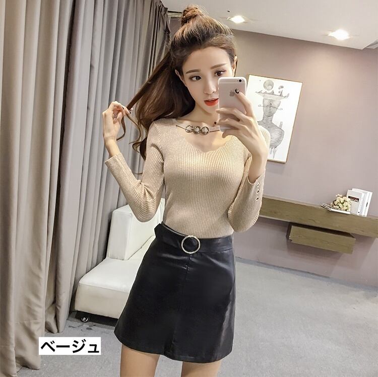 トップス レディース カットソー 長袖 無地 春 秋 スリム タイト 細身 かわいい 大人可愛い きれいめ シンプル カジュアル 大人 上品 おしゃれ お洒落 大人可愛い 大人女子 個性的 セクシー エレガント Vネック 袖あり 黒 ブラック 緑 グリーン 灰色 グレー ベージュ S M L 20代 30代 学生 通学 デート お出かけ 女子会 休日 アウトドア 旅行 着回し 普段使い 韓国 韓国系 オルチャン ファッション コーデ スタイル モテ 送料無料 トレンド 流行 インスタ映え | Rena 韓国ファッション レディースアパレル