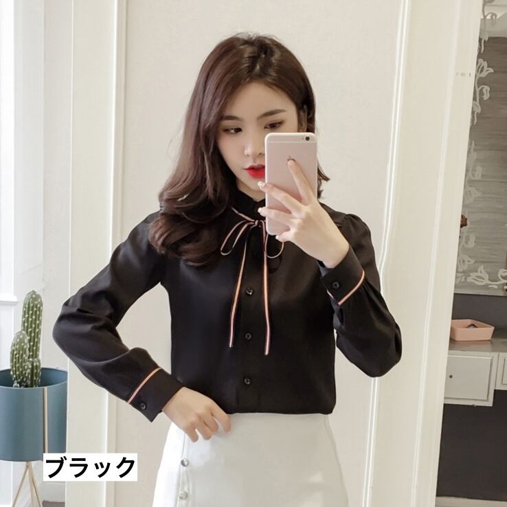 トップス レディース ブラウス 長袖 無地 春 秋 スリム タイト 細身 リボン かわいい 大人可愛い きれいめ シンプル カジュアル 大人 上品 おしゃれ お洒落 大人可愛い 大人女子 個性的 セクシー エレガント Vネック ハイネック 袖あり 白 ホワイト 黒 ブラック くすみカラー 大人カラー S M L XL 2XL 20代 30代 学生 通学 デート お出かけ 女子会 休日 アウトドア 旅行 着回し 普段使い 韓国 韓国系 コーデ スタイル モテ 送料無料 トレンド 流行 インスタ映え | Rena 韓国ファッション レディースアパレル