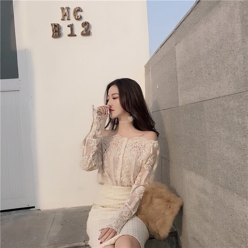 ブラウス 長袖 春 夏 秋 レース バックコンシャス 透け感 かわいい 大人可愛い きれいめ シンプル カジュアル 大人 上品 おしゃれ かっこいい 大人女子 ガーリー セクシー エレガント オフショルダー 袖あり 白トップス 白 ホワイト 黒 ブラック S M L XL 大きいサイズ 10代 20代 30代 40代 学生 通学 デート お出かけ 女子会 パーティー イベント 着回し 普段使い 韓国系 ファッション コーデ 送料無料 インスタ映え | Rena 韓国ファッション レディースアパレル