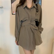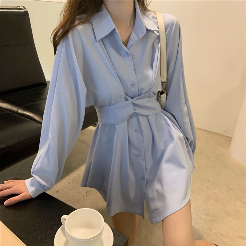 ワンピース シャツワンピース ミニ丈 長袖 無地 春 秋 冬 ウエストマーク かわいい 大人可愛い きれいめ シンプル カジュアル 大人 上品 おしゃれ 大人女子 こなれ感 ミニ 白 ホワイト カーキ 水色 S M L XL 大きいサイズ 10代 20代 30代 40代 学生 通学 デート お出かけ 女子会 着回し 普段使い 韓国系 ファッション コーデ 美脚 脚長 送料無料 | Rena 韓国ファッション レディースアパレル