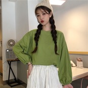 シンプルなデザインに、ふんわりとしたランタンスリーブがキュートで可愛い長袖シャツです。