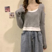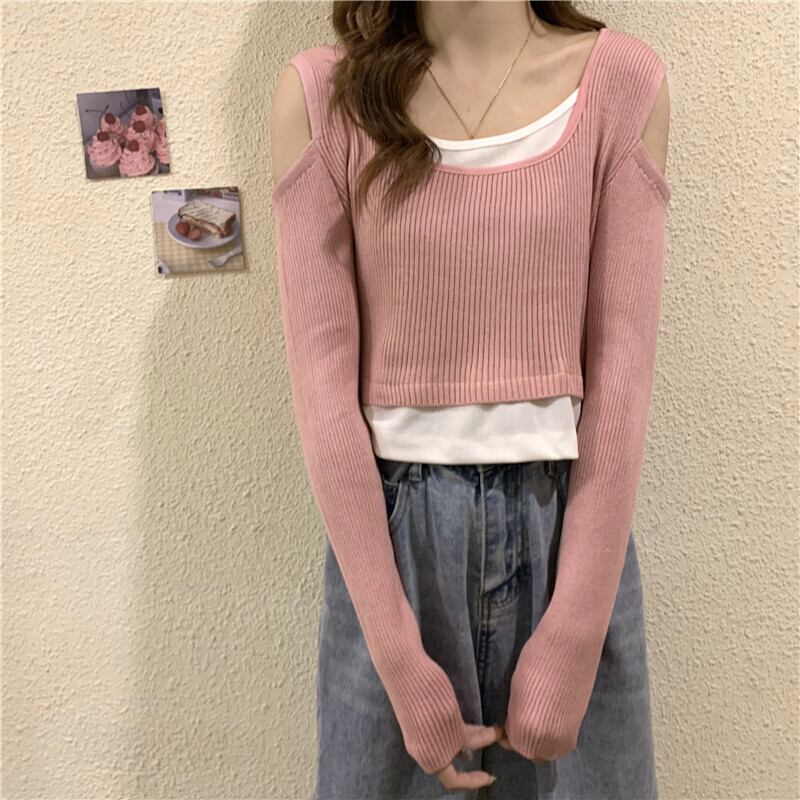 トップス セーター ショート丈 長袖 無地 春 秋 冬 ドッキング リブ かわいい 大人可愛い きれいめ シンプル カジュアル 大人 上品 おしゃれ 大人女子 キュート ガーリー オフショルダー オフショル 黒 ブラック 灰色 グレー ピンク S M L 10代 20代 30代 40代 OL 通勤 学生 通学 デート お出かけ 公園デビュー 女子会 お泊まり 休日 着回し 普段使い 重ね着 韓国系 ファッション コーデ 楽ちん モテ 送料無料 | Rena 韓国ファッション レディースアパレル