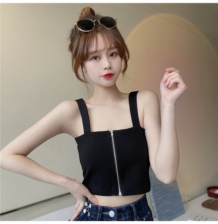 トップス キャミソール タンクトップ ショート丈 ノースリーブ 無地 春 夏 秋 ファスナー かわいい 大人可愛い きれいめ シンプル カジュアル 大人 上品 おしゃれ 大人女子 袖なし 白トップス 白 ホワイト 黒 ブラック モノトーン S M L 10代 20代 30代 40代 50代 OL 通勤 学生 通学 デート お出かけ 女子会 休日 パーティー イベント 着回し 普段使い 重ね着 韓国系 ファッション コーデ プチプラ 送料無料 | Rena 韓国ファッション レディースアパレル