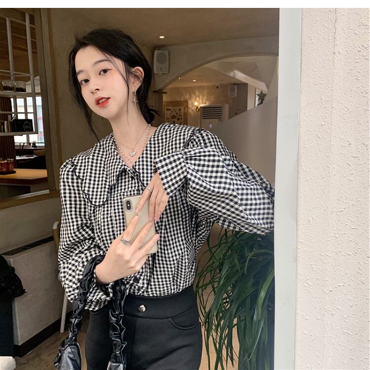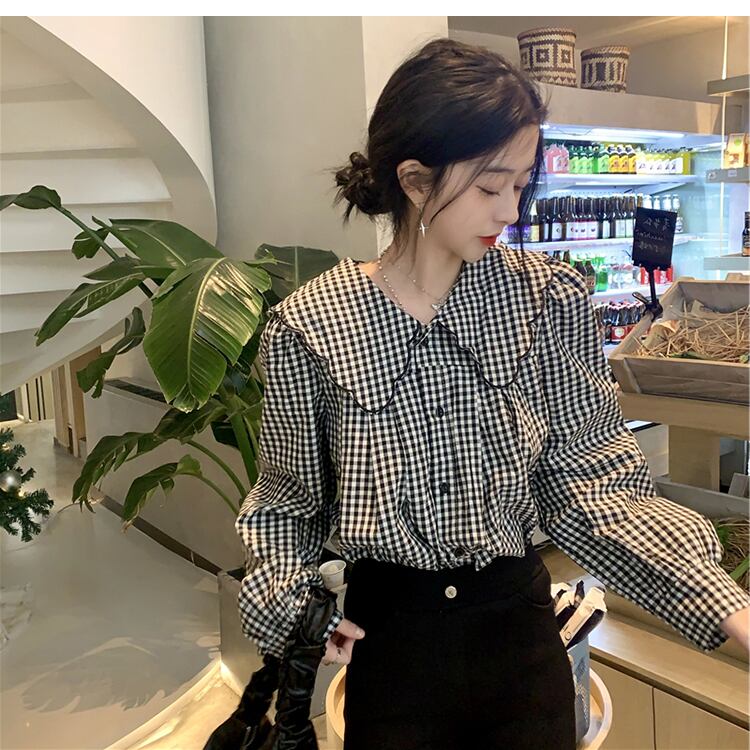 トップス シャツ ブラウス 長袖 千鳥格子 春 夏 秋 前開き かわいい 大人可愛い きれいめ シンプル カジュアル 大人 上品 おしゃれ 大人女子 ラブリー キュート ガーリー 襟付き ボリューム袖 S M L XL 大きいサイズ 10代 20代 30代 40代 OL 通勤 学生 通学 デート お出かけ 女子会 パーティー イベント 着回し 普段使い 重ね着 韓国系 コーデ スタイル モテ 定番 送料無料 | Rena 韓国ファッション レディースアパレル