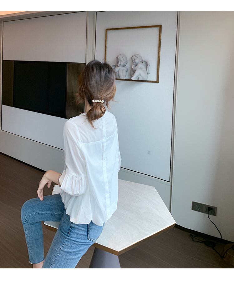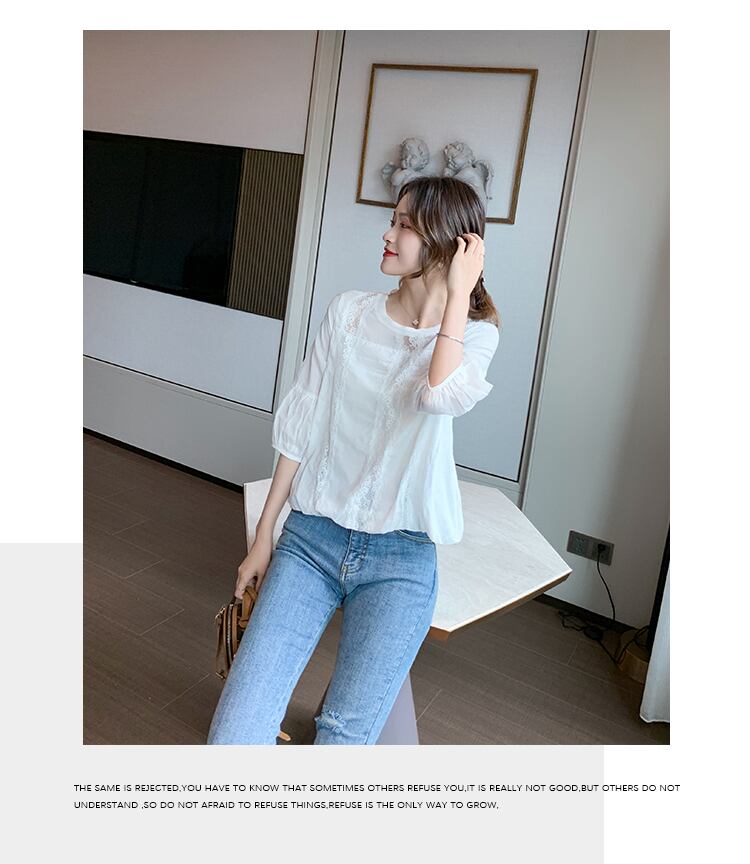 トップス シャツ ブラウス 五分袖 無地 春 夏 秋 レース かわいい 大人可愛い きれいめ シンプル カジュアル 大人 上品 おしゃれ 大人女子 こなれ感 キュート ガーリー とろみ感 ボリューム袖 白シャツ 白トップス 白 ホワイト S M L XL 大きいサイズ 10代 20代 30代 40代 オフィス ビジネス OL 通勤 学生 通学 デート お出かけ 女子会 着回し 普段使い コーデ 送料無料 | Rena 韓国ファッション レディースアパレル