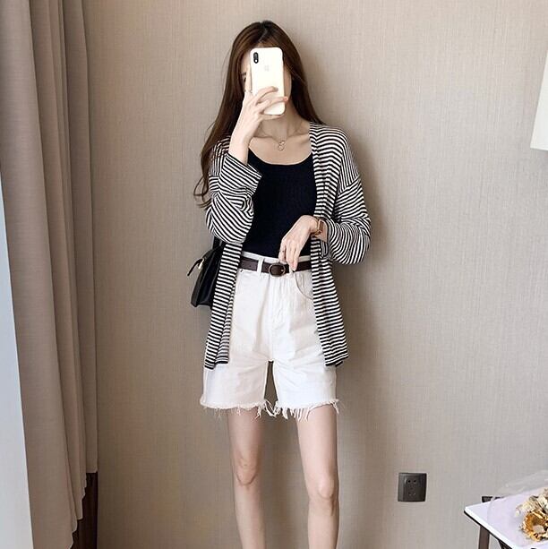 トップス カーディガン ロング丈 長袖 ボーダー 春 夏 秋 細身 かわいい 大人可愛い きれいめ シンプル カジュアル 大人 上品 おしゃれ 大人女子 こなれ感 ラフ ボーイッシュ キュート M L XL 2XL 3XL 4XL 大きいサイズ ビッグサイズ 10代 20代 30代 40代 50代 OL 通勤 学生 通学 デート お出かけ 女子会 休日 着回し 普段使い 重ね着 ファッション コーデ 送料無料 | Rena 韓国ファッション レディースアパレル