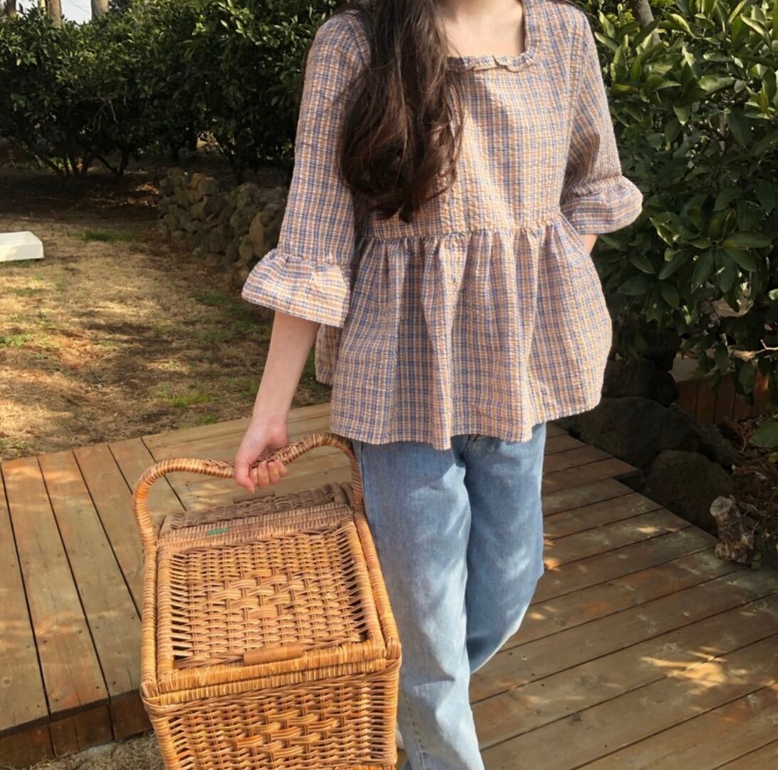 トップス レディース カットソー 七分袖 柄 チェック 春 夏 秋 フレア スリム タイト ストレート 裾フレア フリル 透け感 シースルー かわいい 大人可愛い きれいめ シンプル カジュアル 大人 上品 おしゃれ お洒落 大人可愛い 大人女子 ガーリー 個性的 抜け感 スクエアネック 袖なし 大人カラー ワンサイズ 20代 30代 デート お出かけ 女子会 休日 リゾート 着回し 普段使い 重ね着 オルチャン ファッション コーデ スタイル 楽ちん モテ 送料無料 トレンド 流行 インスタ映え | Rena 韓国ファッション レディースアパレル