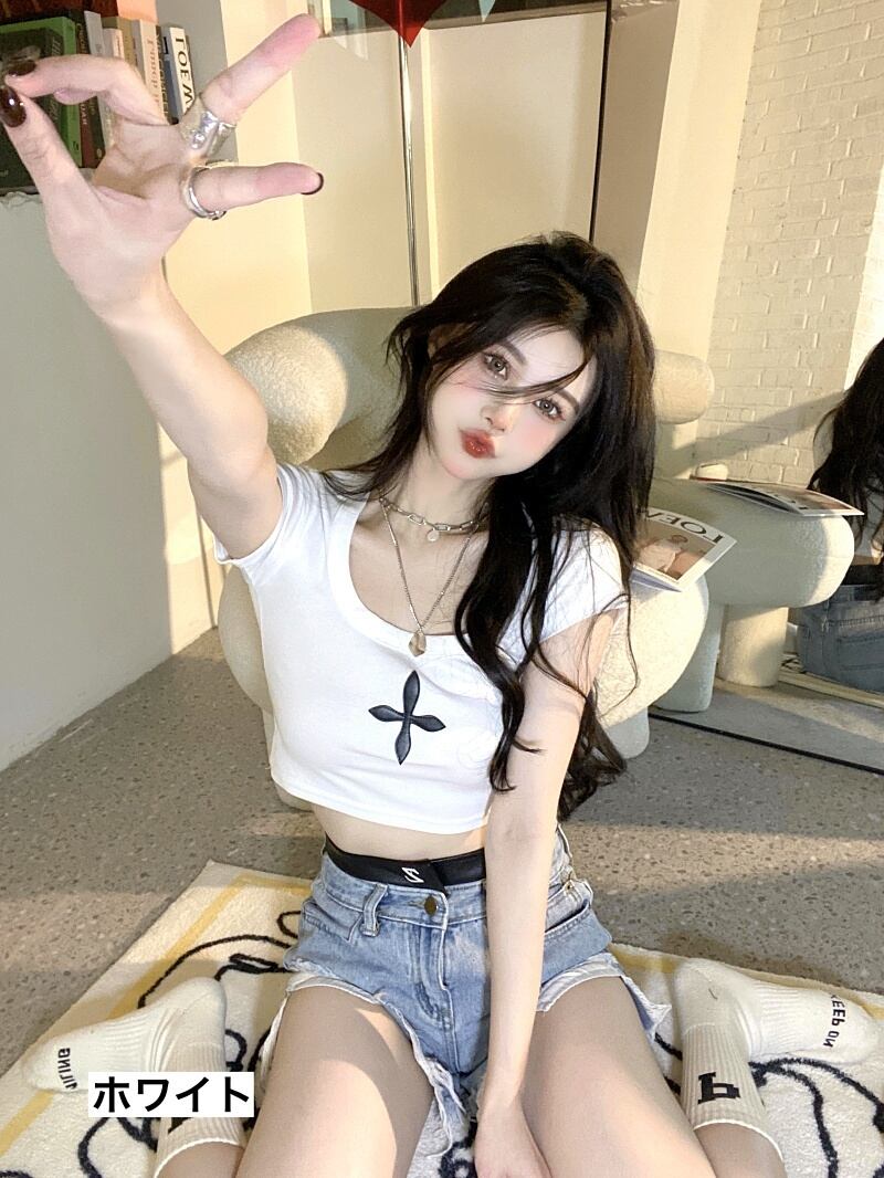 トップス レディース Tシャツ ショート丈 半袖 プリント 春 夏 スリム タイト 細身 ストレート かわいい 大人可愛い きれいめ シンプル カジュアル 大人 上品 おしゃれ お洒落 レトロ 大人可愛い ラフ クール エレガント 抜け感 Uネック 袖あり 白 ホワイト 黒 ブラック くすみカラー 大人カラー ボルドー ワンサイズ 20代 30代 デート お出かけ 女子会 休日 アウトドア 着回し 普段使い 韓国 韓国系 オルチャン コーデ スタイル モテ 送料無料 トレンド 流行 インスタ映え | Rena 韓国ファッション レディースアパレル