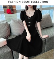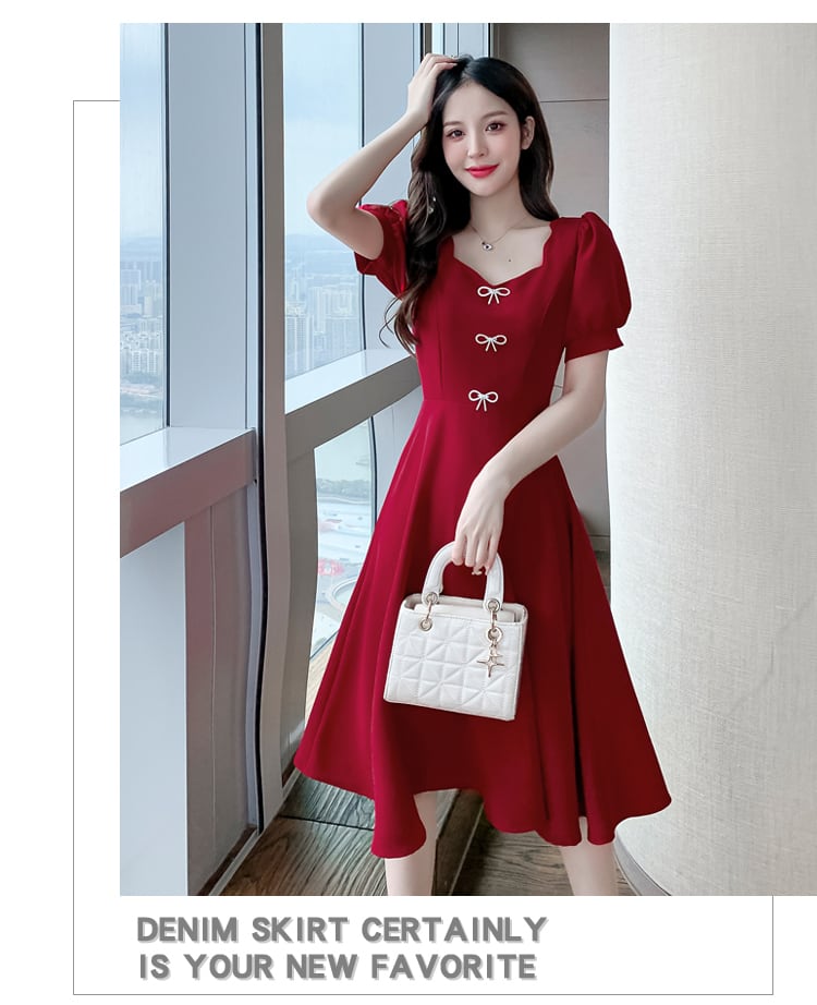 ワンピース フレアワンピース ミモレ丈 半袖 無地 春 夏 秋 リボン ウエストマーク かわいい 大人可愛い きれいめ シンプル 大人 上品 お洒落 大人女子 キュート ガーリー エレガント スクエアネック ミモレ ボリューム袖 黒 ブラック 赤 レッド S M L XL 大きいサイズ 10代 20代 30代 OL 通勤 学生 通学 デート お出かけ 女子会 パーティー イベント 普段使い ファッション コーデ スタイル モテ 送料無料 | Rena 韓国ファッション レディースアパレル