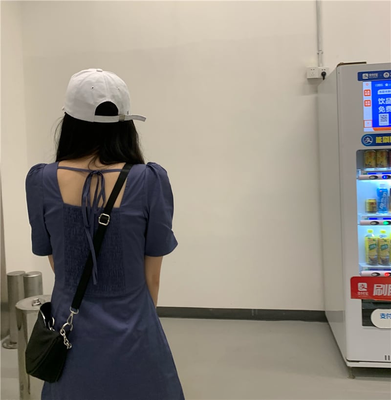 ワンピース レディース フレアワンピース ミニ丈 ショート丈 半袖 無地 春 夏 セミフレア かわいい 大人可愛い きれいめ シンプル カジュアル 大人 上品 おしゃれ お洒落 大人可愛い 大人女子 個性的 セクシー スクエアネック ミニ ショート 袖あり 黒 ブラック 青 ブルー くすみカラー 大人カラー S M L XL 20代 30代 デート お出かけ 女子会 休日 着回し 普段使い 韓国 韓国系 オルチャン ファッション コーデ モテ プチプラ 送料無料 トレンド 流行 インスタ映え | Rena 韓国ファッション レディースアパレル