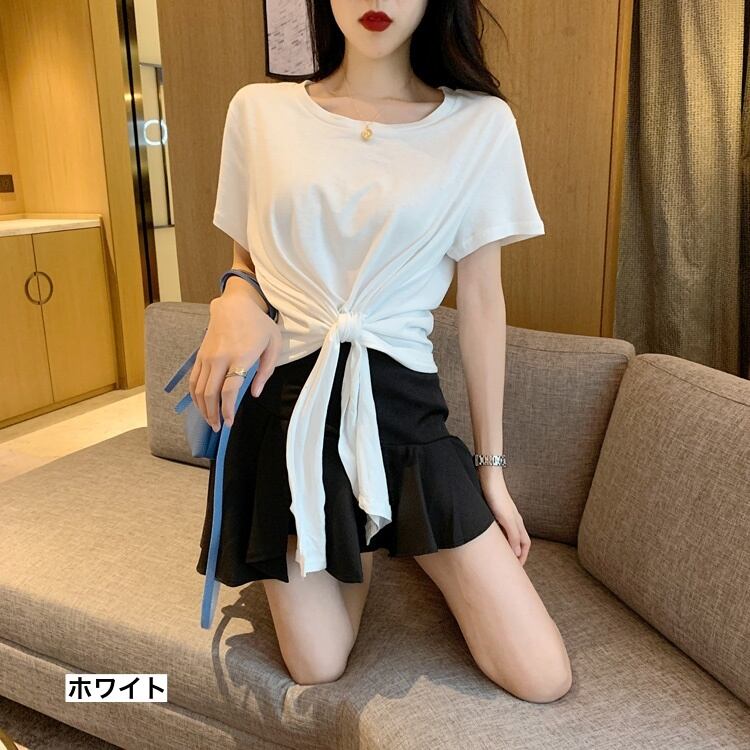 トップス レディース シャツ 半袖 無地 春 夏 セミフレア シフォン リボン かわいい 大人可愛い きれいめ シンプル カジュアル 大人 上品 おしゃれ お洒落 レトロ 大人可愛い 大人女子 キュート とろみ感 Uネック 袖あり 白 ホワイト 黒 ブラック ピンク くすみカラー S M L XL 20代 30代 デート お出かけ 女子会 休日 旅行 着回し 普段使い 韓国 韓国系 オルチャン ファッション コーデ 楽ちん モテ 送料無料 トレンド 流行 インスタ映え | Rena 韓国ファッション レディースアパレル