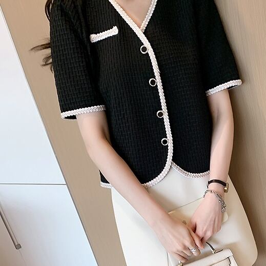 高級感があって高見えも間違い無しの、Vネックトップスです。