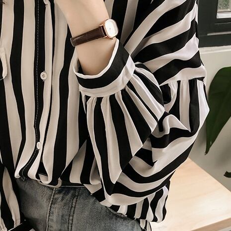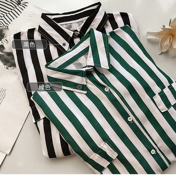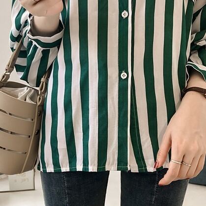 トップス レディース シャツ 長袖 柄 ストライプ 春 夏 シフォン かわいい 大人可愛い きれいめ シンプル カジュアル 大人 上品 おしゃれ お洒落 レトロ 大人可愛い 大人女子 ラフ 個性的 とろみ感 Vネック 袖あり 黒 ブラック 緑 グリーン くすみカラー 大人カラー S M L XL 2XL 3XL 4XL 20代 30代 学生 通学 デート お出かけ 女子会 休日 旅行 着回し 普段使い 韓国 韓国系 オルチャン コーデ スタイル 楽ちん 送料無料 トレンド 流行 インスタ映え | Rena 韓国ファッション レディースアパレル