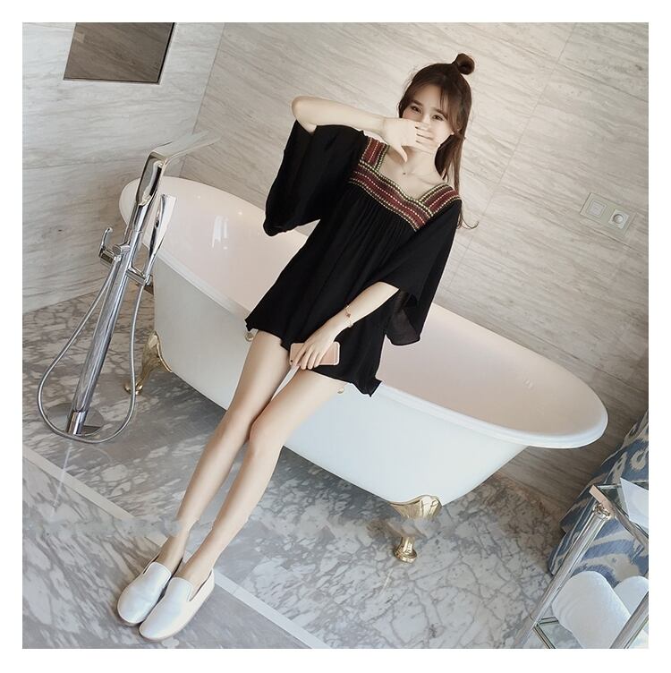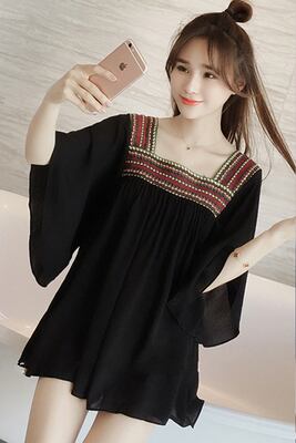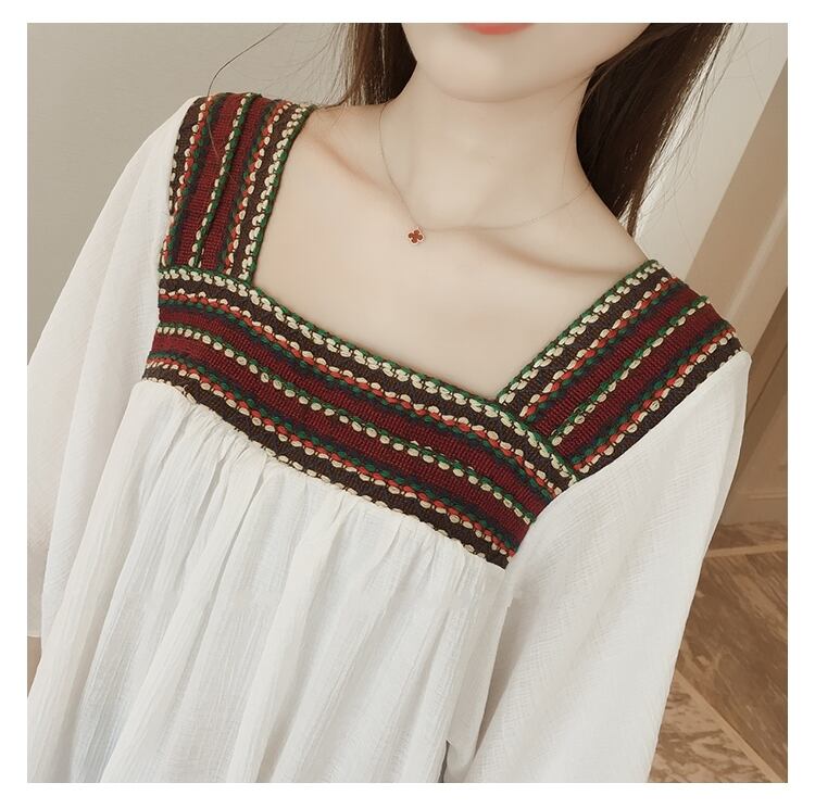 トップス レディース シャツ 七分袖 無地 春 夏 セミフレア 裾フレア シフォン かわいい 大人可愛い きれいめ シンプル カジュアル 大人 上品 おしゃれ お洒落 レトロ エスニック エキゾチック 大人可愛い 大人女子 ラフ キュート 個性的 スクエアネック 袖あり 白 ホワイト 黒 ブラック くすみカラー 大人カラー M L XL 2XL 3XL 4XL 20代 30代 デート お出かけ 女子会 休日 着回し 普段使い 韓国ファッション コーデ 楽ちん モテ 送料無料 トレンド 流行 インスタ映え | Rena 韓国ファッション レディースアパレル