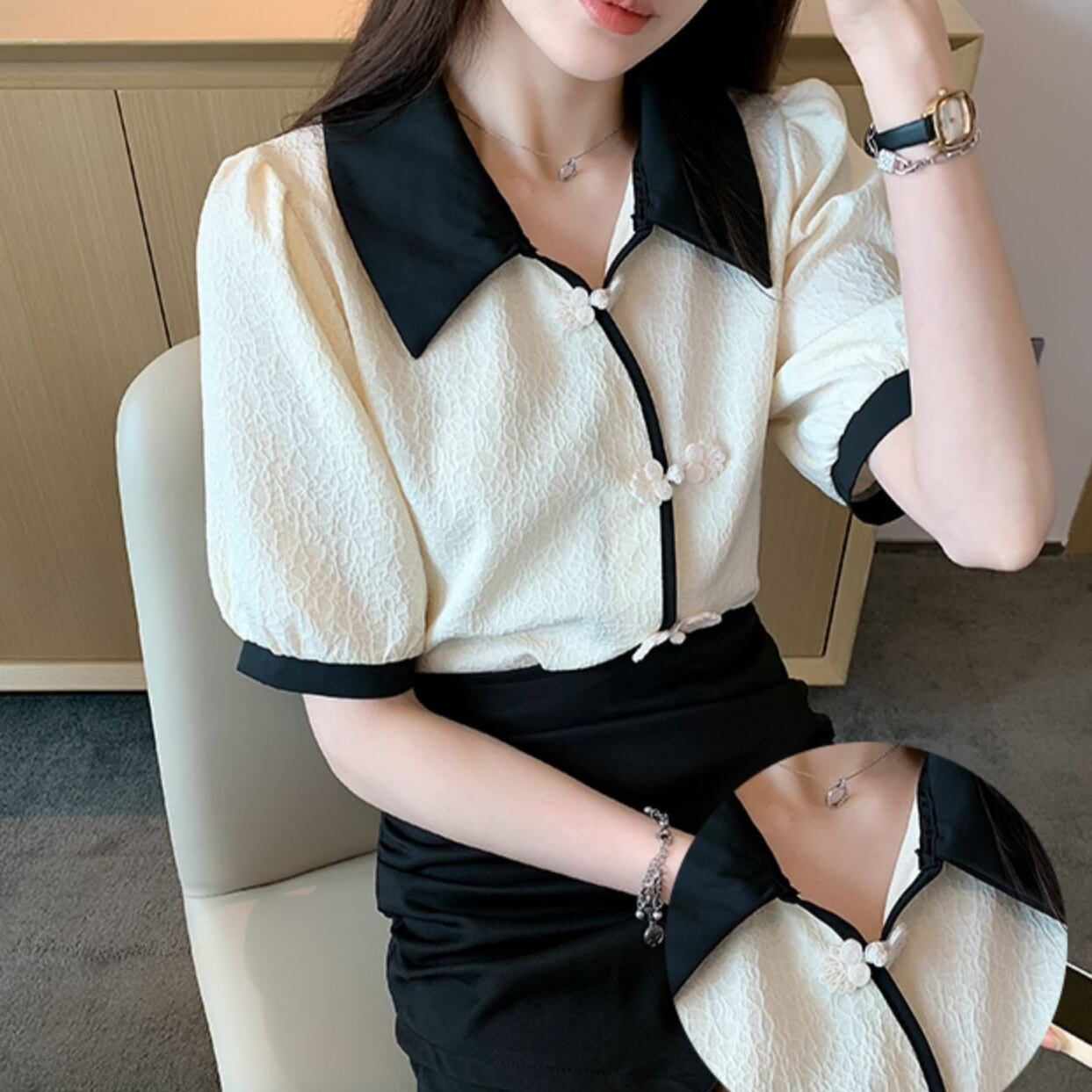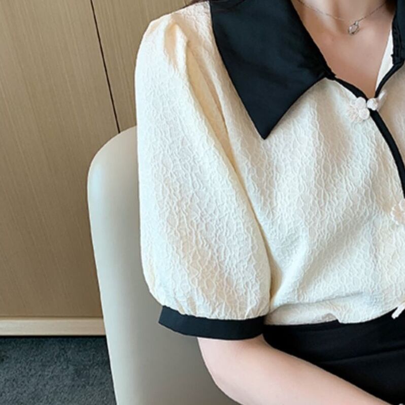 トップス レディース シャツ 五分袖 七分袖 無地 春 夏 セミフレア 裾フレア シフォン かわいい 大人可愛い きれいめ シンプル カジュアル 大人 上品 おしゃれ お洒落 レトロ 大人可愛い 大人女子 Vネック スクエアネック 襟付き 袖あり 白 ホワイト くすみカラー S M L XL 2XL 3XL 4XL 20代 30代 オフィス OL デート お出かけ 女子会 休日 着回し 普段使い 韓国 韓国系 オルチャン ファッション コーデ 楽ちん モテ 送料無料 トレンド 流行 インスタ映え | Rena 韓国ファッション レディースアパレル