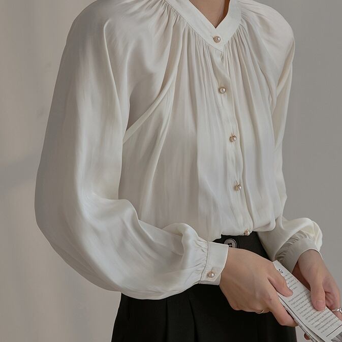 トップス レディース ブラウス 長袖 無地 春 夏 秋 セミフレア スリム 前開き かわいい 大人可愛い きれいめ シンプル カジュアル 大人 上品 おしゃれ お洒落 レトロ 大人可愛い 大人女子 こなれ感 キュート 個性的 Vネック 袖あり 白 ホワイト くすみカラー 大人カラー S M L 20代 30代 ビジネス OL 通勤 学生 通学 デート お出かけ 女子会 休日 着回し 普段使い 韓国 韓国系 オルチャン ファッション コーデ スタイル モテ 送料無料 トレンド 流行 インスタ映え | Rena 韓国ファッション レディースアパレル