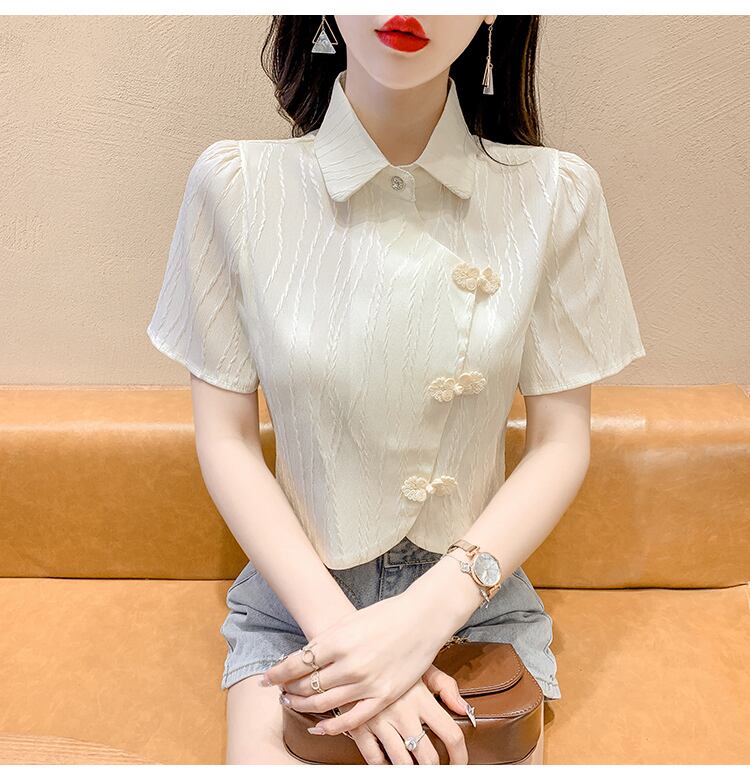 チャイナ風デザインが可愛らしい、半袖ブラウスです。