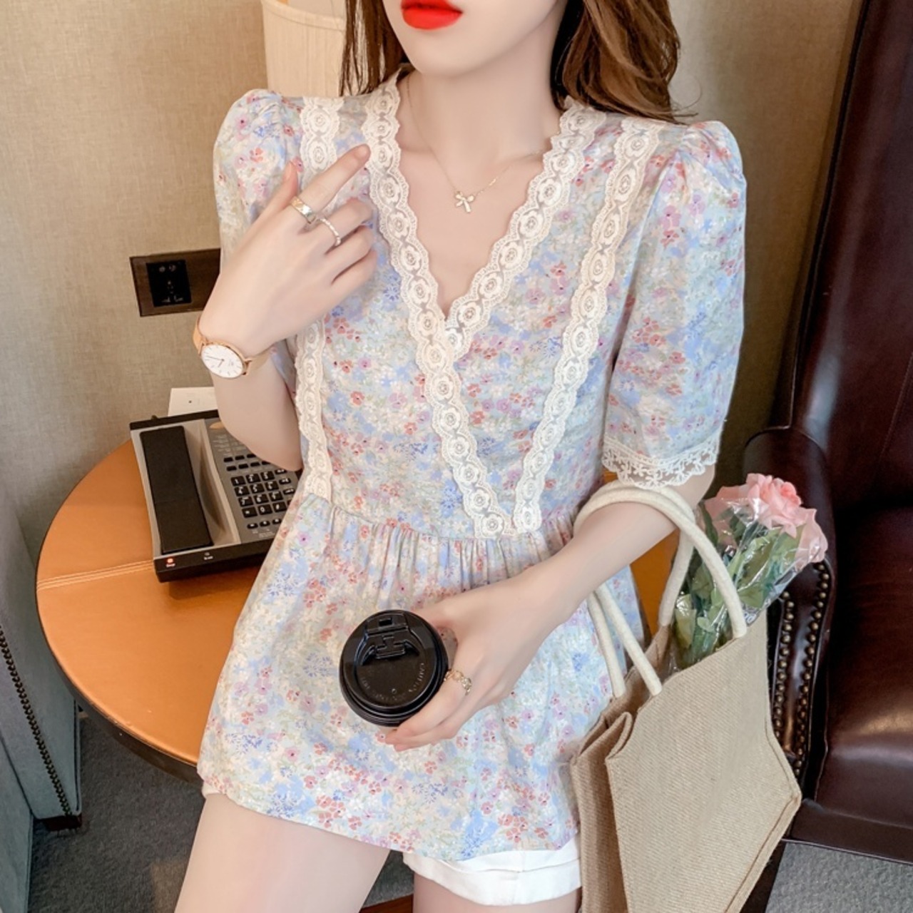 ふんわり感が女の子らしさ満点の、花柄トップスです。