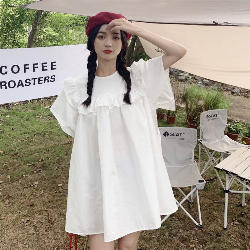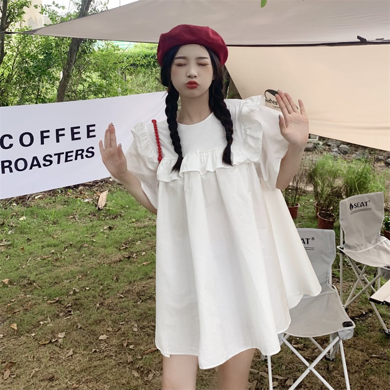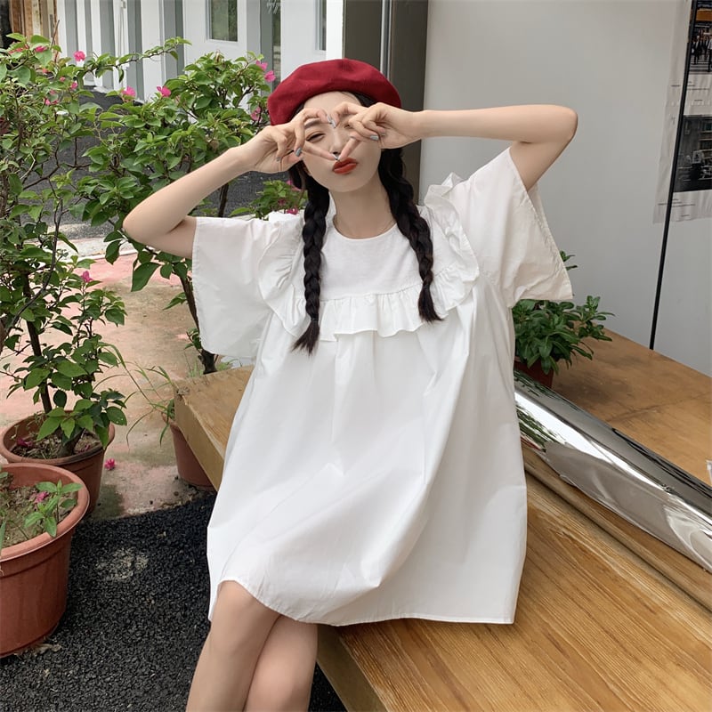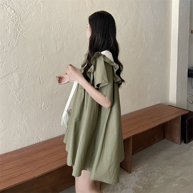 ワンピース レディース フレアワンピース ミニ丈 ショート丈 半袖 無地 春 夏 セミフレア Aライン シフォン フリル かわいい 大人可愛い きれいめ シンプル カジュアル 大人 上品 おしゃれ お洒落 レトロ 大人可愛い 大人女子 キュート 個性的 Uネック 袖あり 白 ホワイト 緑 グリーン くすみカラー S M L XL 20代 30代 通学 お出かけ 女子会 休日 旅行 着回し 普段使い 韓国 韓国系 オルチャン ファッション コーデ スタイル モテ 送料無料 トレンド 流行 インスタ映え | Rena 韓国ファッション レディースアパレル