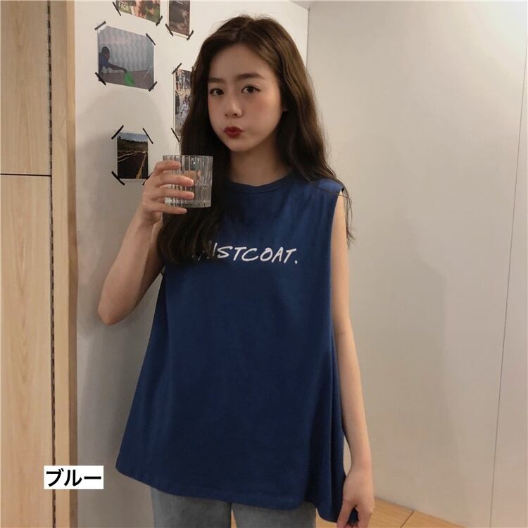 トップス レディース タンクトップ ノースリーブ プリント 春 夏 スリム かわいい 大人可愛い きれいめ シンプル カジュアル 大人 上品 おしゃれ お洒落 レトロ 大人可愛い 大人女子 ラフ マニッシュ キュート 抜け感 Uネック 袖なし 白 ホワイト 黒 ブラック 青 ブルー 灰色 グレー くすみカラー S M L XL 20代 30代 デート お出かけ 女子会 休日 着回し 普段使い 韓国 韓国系 オルチャン ファッション コーデ スタイル モテ 送料無料 トレンド 流行 インスタ映え | Rena 韓国ファッション レディースアパレル