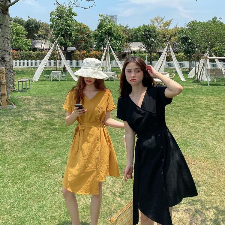 ワンピース レディース ショート丈 半袖 無地 春 夏 セミフレア スリム かわいい 大人可愛い きれいめ シンプル カジュアル 大人 上品 おしゃれ お洒落 レトロ 大人可愛い 大人女子 キュート ガーリー 個性的 クール Vネック オフショルダー オフショル 袖あり 黒 ブラック イエロー くすみカラー S M L XL 20代 30代 デート お出かけ 女子会 休日 アウトドア パーティー 旅行 着回し 普段使い 韓国 韓国系 オルチャン コーデ スタイル 送料無料 トレンド 流行 インスタ映え