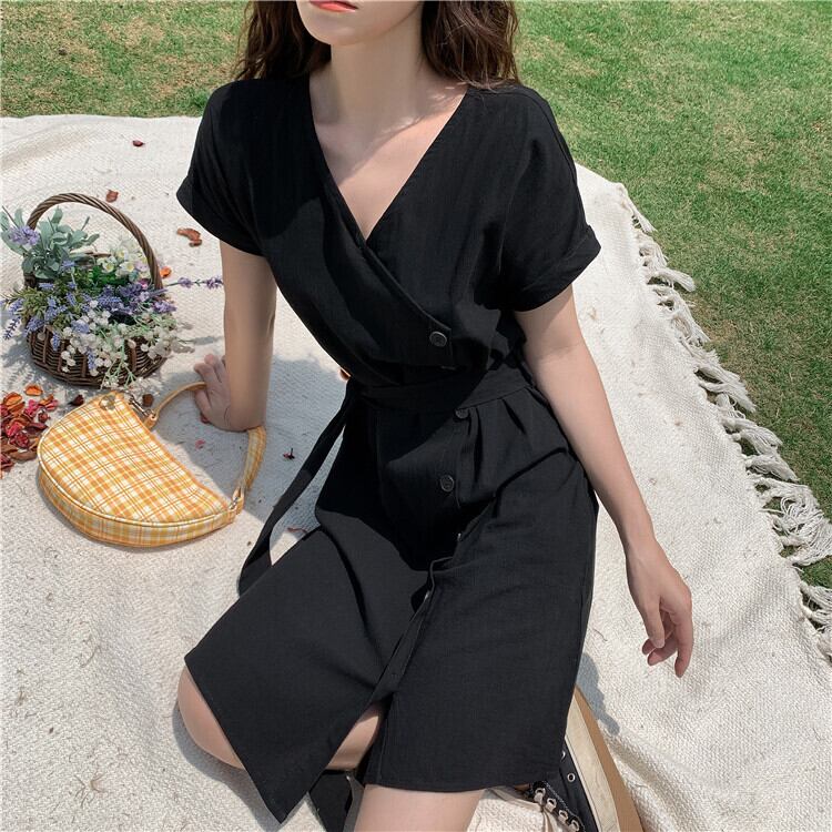 ワンピース レディース ショート丈 半袖 無地 春 夏 セミフレア スリム かわいい 大人可愛い きれいめ シンプル カジュアル 大人 上品 おしゃれ お洒落 レトロ 大人可愛い 大人女子 キュート ガーリー 個性的 クール Vネック オフショルダー オフショル 袖あり 黒 ブラック イエロー くすみカラー S M L XL 20代 30代 デート お出かけ 女子会 休日 アウトドア パーティー 旅行 着回し 普段使い 韓国 韓国系 オルチャン コーデ スタイル 送料無料 トレンド 流行 インスタ映え | Rena 韓国ファッション レディースアパレル