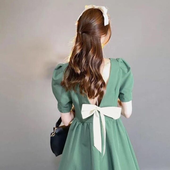 ワンピース レディース フレアワンピース ショート丈 半袖 無地 春 夏 セミフレア Aライン リボン かわいい 大人可愛い きれいめ シンプル カジュアル 大人 上品 おしゃれ お洒落 レトロ 大人可愛い 大人女子 キュート ガーリー 個性的 クール エレガント Vネック 袖あり 大人カラー S M L XL 20代 30代 デート お出かけ 女子会 休日 パーティー 旅行 着回し 普段使い 韓国 オルチャン ファッション コーデ スタイル 送料無料 トレンド 流行 インスタ映え | Rena 韓国ファッション レディースアパレル