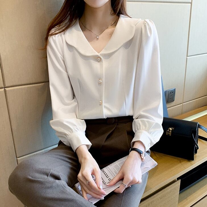 トップス レディース ブラウス 長袖 無地 春 夏 秋 かわいい 大人可愛い きれいめ シンプル カジュアル 大人 上品 おしゃれ お洒落 大人可愛い 大人女子 ラフ キュート エレガント フォーマル Vネック 袖あり 白 ホワイト くすみカラー 大人カラー S M L XL 2XL 20代 30代 オフィス ビジネス OL 通勤 学生 通学 デート お出かけ 女子会 休日 着回し 普段使い 韓国 韓国系 オルチャン ファッション スタイル モテ 定番 送料無料 トレンド 流行 インスタ映え | Rena 韓国ファッション レディースアパレル