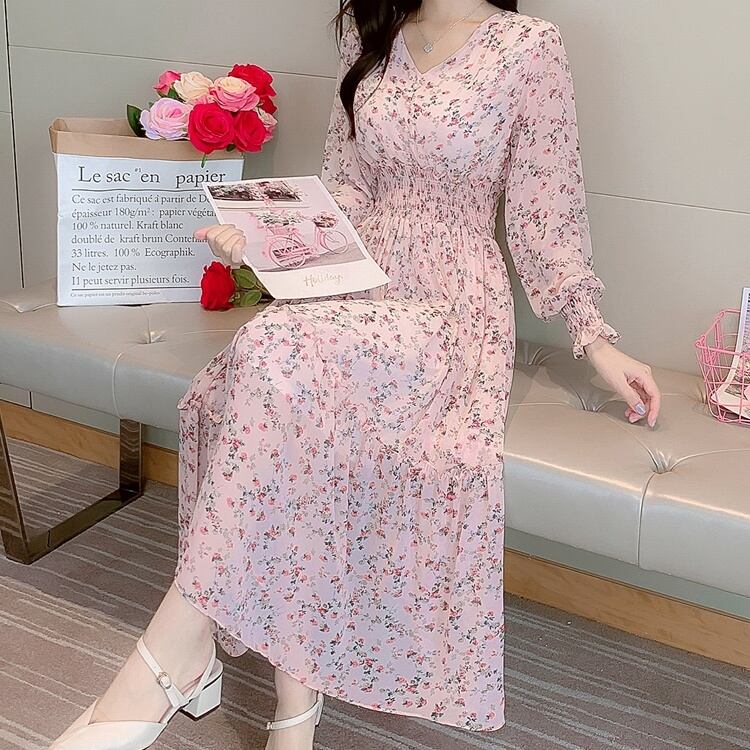 ワンピース レディース チュールスカート フレアワンピース ミモレ丈 柄 花柄 フラワー 春 夏 秋 フレア Aライン フリル ふわふわ かわいい 大人可愛い きれいめ シンプル カジュアル 大人 上品 おしゃれ お洒落 大人可愛い 大人女子 キュート ガーリー とろみ感 Vネック ミモレ 袖あり くすみカラー 大人カラー S M L XL 20代 30代 デート お出かけ 女子会 休日 着回し 普段使い 韓国 韓国系 オルチャン コーデ スタイル モテ 送料無料 トレンド 流行 インスタ映え | Rena 韓国ファッション レディースアパレル