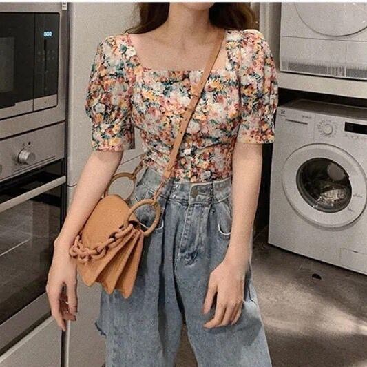 トップス レディース カットソー ショート丈 半袖 柄 花柄 フラワー 春 夏 スリム バックリボン かわいい 大人可愛い きれいめ シンプル カジュアル 大人 上品 おしゃれ お洒落 かっこいい レトロ 大人可愛い 大人女子 ガーリー 抜け感 スクエアネック 袖あり くすみカラー 大人カラー S M L XL 20代 30代 学生 通学 デート お出かけ 女子会 休日 着回し 普段使い 韓国 韓国系 オルチャン ファッション コーデ スタイル 送料無料 トレンド 流行 インスタ映え | Rena 韓国ファッション レディースアパレル
