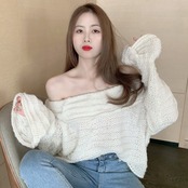 大胆な肌見せで、セクシーな印象を残す、オフショルダーニットトップスです。