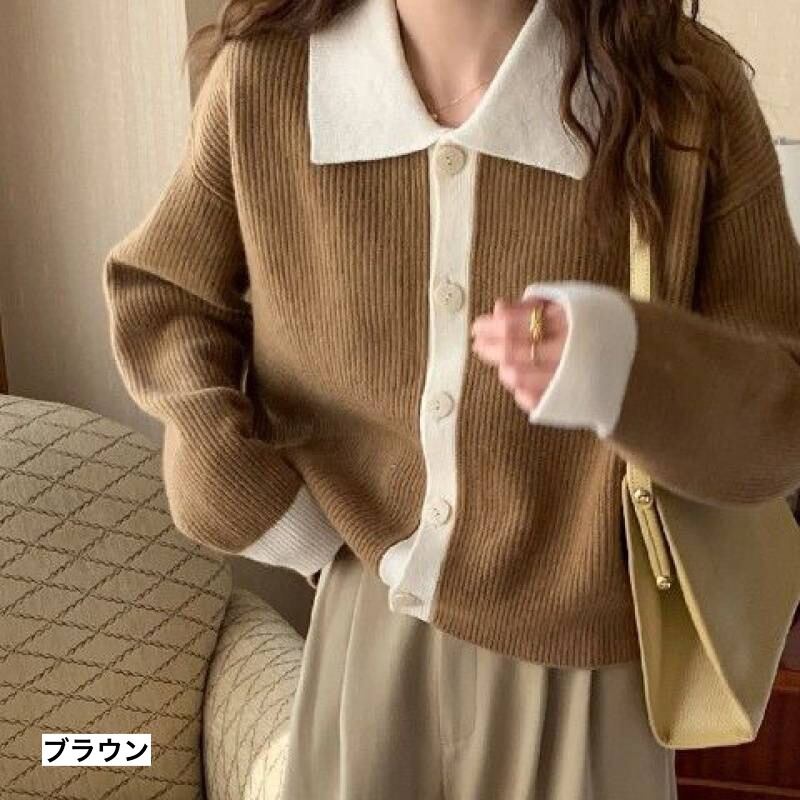 トップス レディース カーディガン ショート丈 長袖 秋 冬 ストレート 前開き かわいい 大人可愛い きれいめ シンプル カジュアル 大人 上品 おしゃれ お洒落 レトロ 大人可愛い 大人女子 こなれ感 ラフ キュート ルーズ 個性的 とろみ感 Vネック 襟付き ショート 袖あり 2点セット 白 ホワイト 茶色 ブラウン くすみカラー ベイクドカラー S M L XL 20代 30代 通学 デート 女子会 休日 着回し 普段使い 韓国 韓国系 コーデ スタイル 送料無料 トレンド 流行 インスタ映え | Rena 韓国ファッション レディースアパレル
