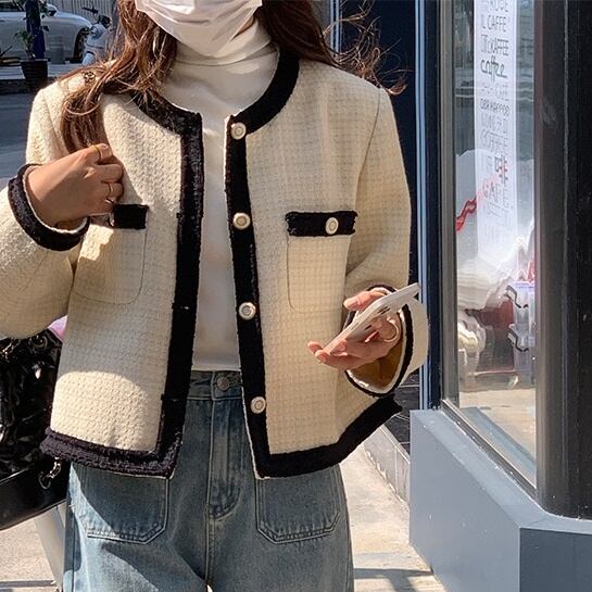 バイカラーの色合いでまとめられたシンプルなデザインは、さまざまな場面で使える便利な一枚。
