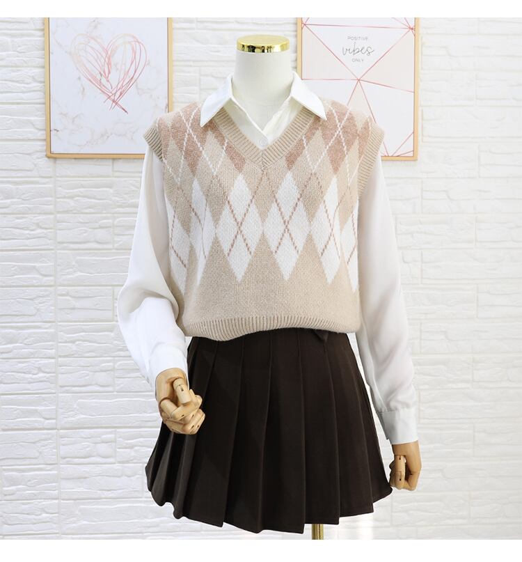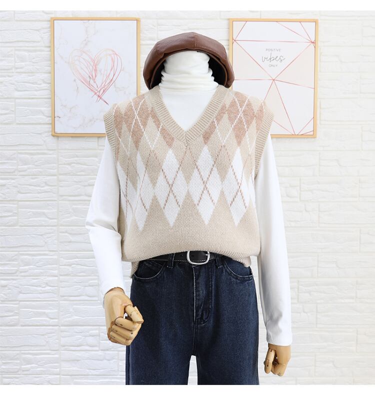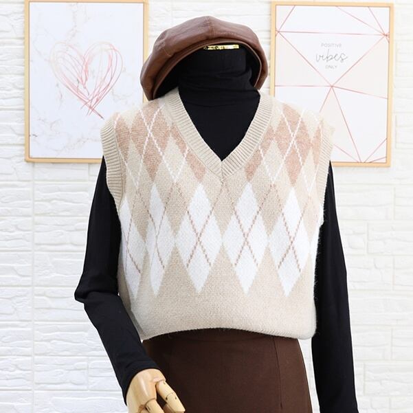トップス レディース ニット ベスト ノースリーブ チェック 秋 冬 ストレート かわいい 大人可愛い きれいめ シンプル カジュアル 大人 上品 おしゃれ お洒落 レトロ 大人可愛い 大人女子 こなれ感 ラフ キュート ルーズ 個性的 とろみ感 Vネック 袖なし 黒 ブラック ベージュ くすみカラー 大人カラー ワンサイズ 20代 30代 通学 デート お出かけ 女子会 休日 着回し 普段使い 韓国 韓国系 コーデ あったか 暖かい モテ プチプラ 送料無料 トレンド 流行 インスタ映え | Rena 韓国ファッション レディースアパレル