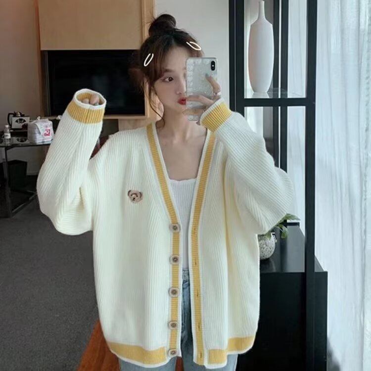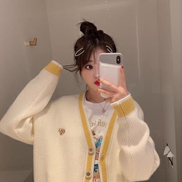 トップス レディース カーディガン 長袖 柄 秋 冬 ストレート 前開き かわいい 大人可愛い きれいめ シンプル カジュアル 大人 上品 おしゃれ お洒落 レトロ 大人可愛い 大人女子 こなれ感 ラフ キュート ルーズ 個性的 とろみ感 Vネック 袖あり 白 ホワイト 灰色 グレー 黄色 イエロー くすみカラー 大人カラー S M L XL 2XL ワンサイズ 20代 30代 通学 デート お出かけ 女子会 休日 着回し 普段使い 韓国 韓国系 モテ プチプラ 送料無料 トレンド 流行 インスタ映え | Rena 韓国ファッション レディースアパレル