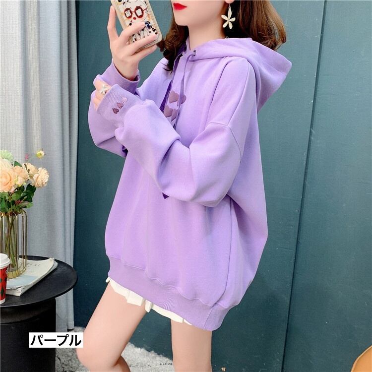 トップス レディース パーカー 長袖 プリント 春 秋 冬 ワイド 伸縮性 かわいい 大人可愛い きれいめ シンプル カジュアル 大人 上品 おしゃれ お洒落 かっこいい レトロ 大人女子 こなれ感 ラフ メンズライク キュート 個性的 Vネック 袖あり 白 ホワイト 緑 グリーン 紫 パープル ピンク くすみカラー ワンサイズ 20代 30代 学生 通学 デート お出かけ 公園デビュー 女子会 休日 運動 アウトドア 着回し 普段使い 韓国 韓国系 楽ちん モテ 送料無料 トレンド 流行 インスタ映え | Rena 韓国ファッション レディースアパレル