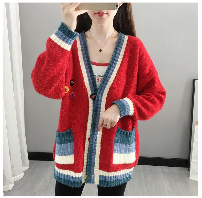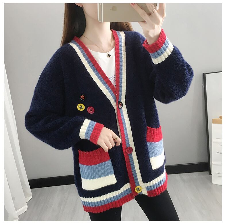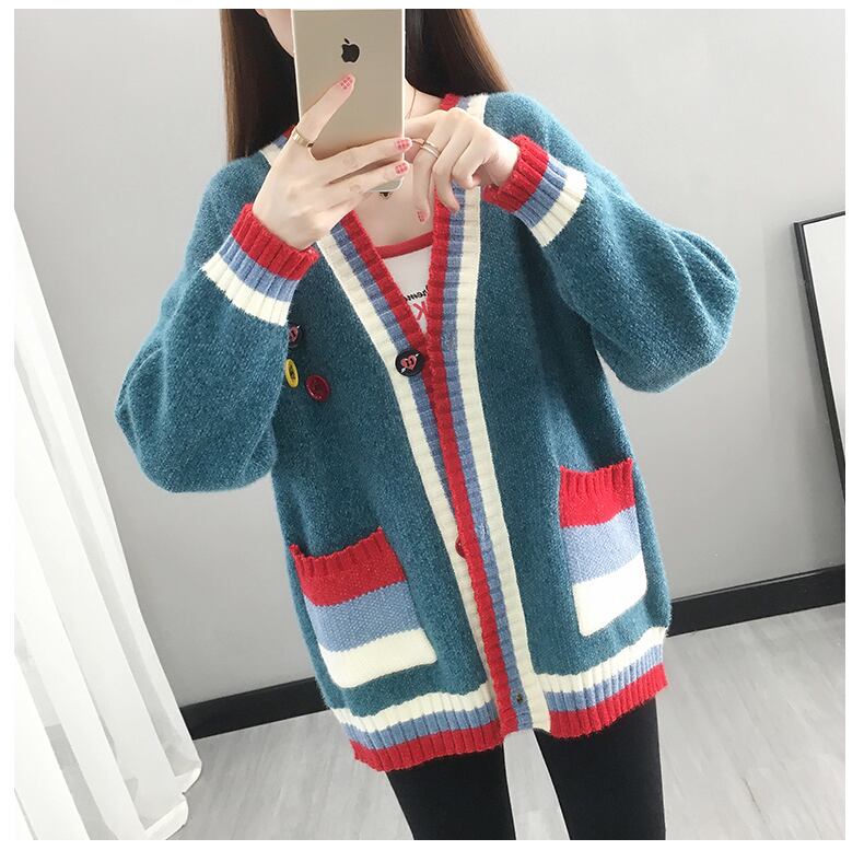 カラフルな色使いが目を引く、おしゃれなカーディガンです。