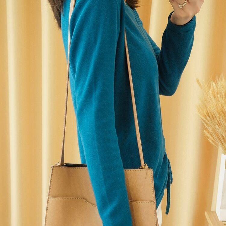 シンプルなデザインなので、さまざまなコーディネートに取り入れやすくて、ロングシーズンに渡って使いこなしやすい一枚です。