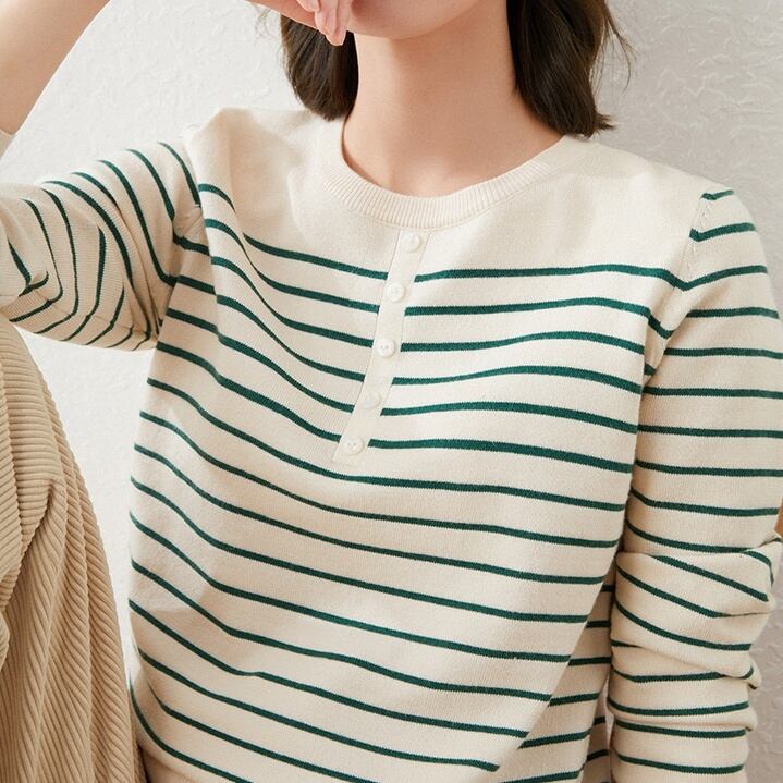 トップス レディース セーター 長袖 ボーダー 春 秋 冬 スリム かわいい 大人可愛い きれいめ シンプル カジュアル 大人 上品 おしゃれ お洒落 レトロ 大人可愛い 大人女子 こなれ感 キュート 個性的 Vネック Uネック 袖あり 綿 白 ホワイト 黒 ブラック 緑 グリーン 茶色 ブラウン くすみカラー S M L XL 2XL 20代 30代 オフィス ビジネス 学生 お出かけ 女子会 休日 着回し 韓国 オルチャン ファッション コーデ スタイル モテ 送料無料 トレンド 流行 インスタ映え | Rena 韓国ファッション レディースアパレル
