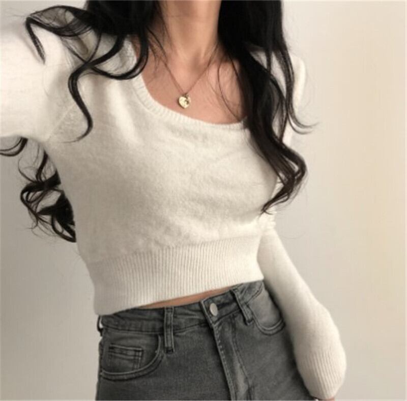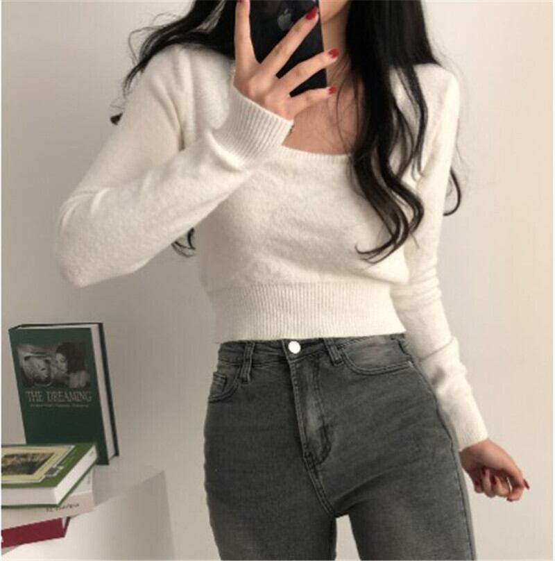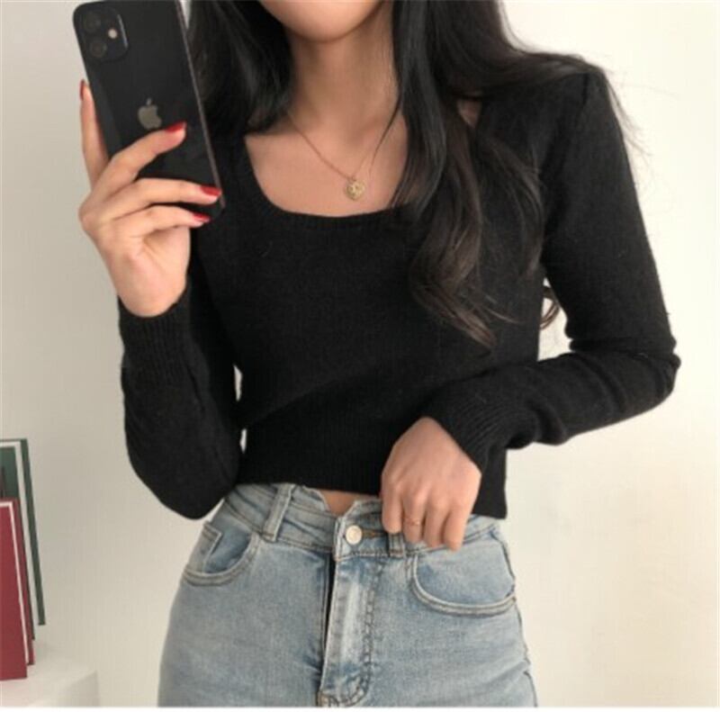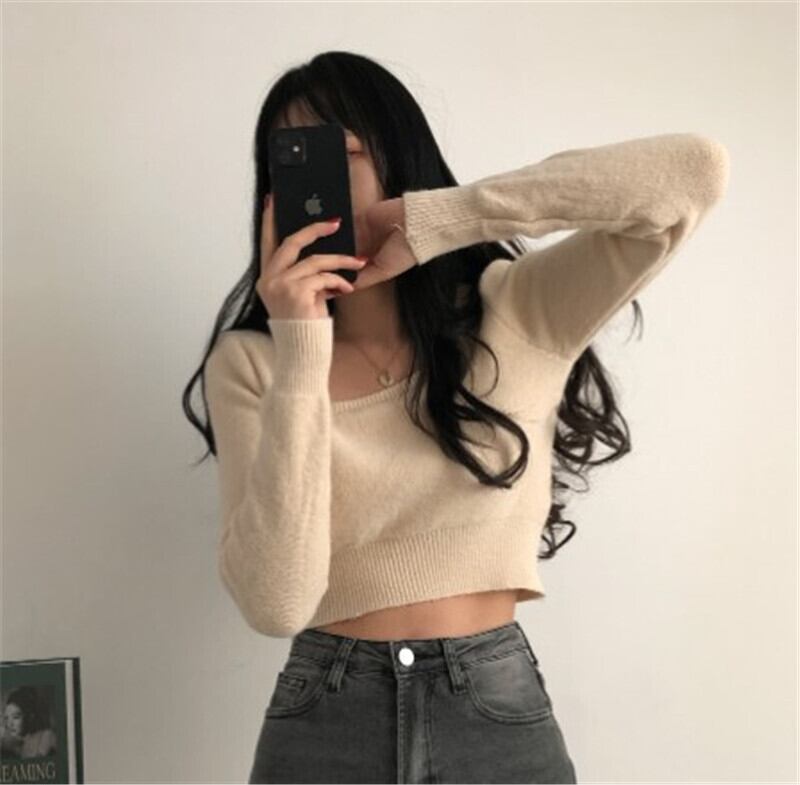 トップス レディース シャツ ニット ショート丈 長袖 無地 春 秋 冬 スリム かわいい 大人可愛い きれいめ シンプル カジュアル 大人 上品 おしゃれ お洒落 レトロ 大人可愛い 大人女子 個性的 とろみ感 Vネック 袖あり 白 ホワイト 黒 ブラック ベージュ くすみカラー 大人カラー ワンサイズ 20代 30代 オフィス 学生 デート お出かけ 女子会 休日 アウトドア 旅行 着回し 普段使い 韓国 韓国系 オルチャン ファッション コーデ スタイル プチプラ トレンド 流行 インスタ映え | Rena 韓国ファッション レディースアパレル