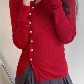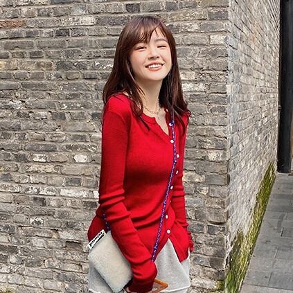 トップス レディース セーター カーディガン 長袖 無地 春 秋 冬 スリム 伸縮性 かわいい 大人可愛い きれいめ シンプル カジュアル 大人 上品 おしゃれ 大人可愛い 大人女子 キュート 個性的 セクシー エレガント とろみ感 Vネック 袖あり 赤 レッド ブラックくすみカラー 大人カラー ベイクドカラー S M L XL 20代 30代 オフィス 通勤 学生 デート お出かけ 女子会 休日 着回し 韓国 韓国系 オルチャン コーデ スタイル モテ 送料無料 トレンド 流行 インスタ映え | Rena 韓国ファッション レディースアパレル