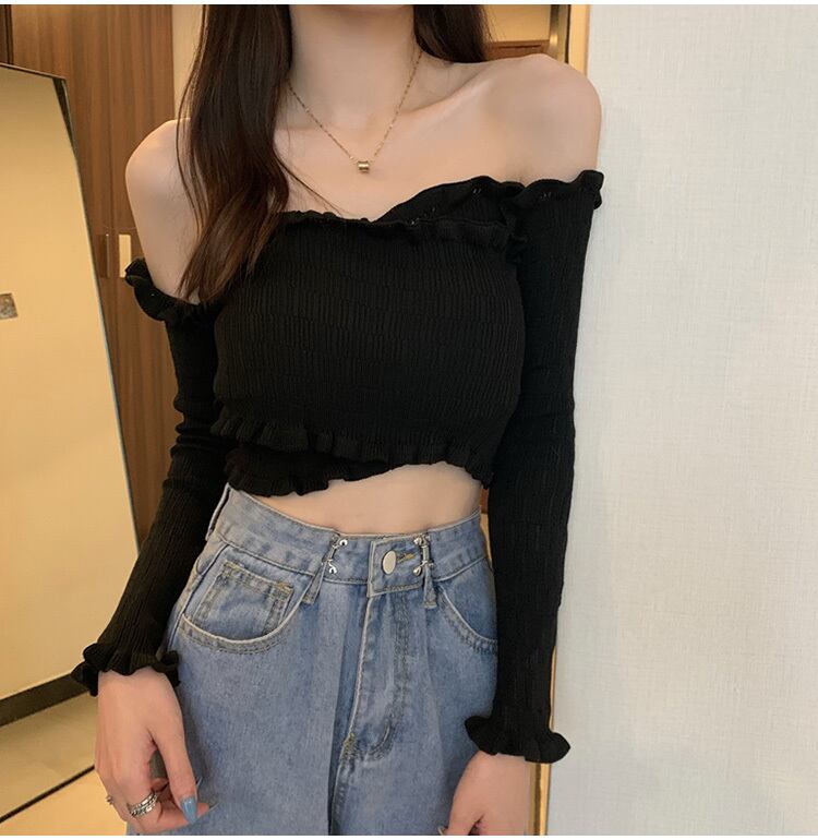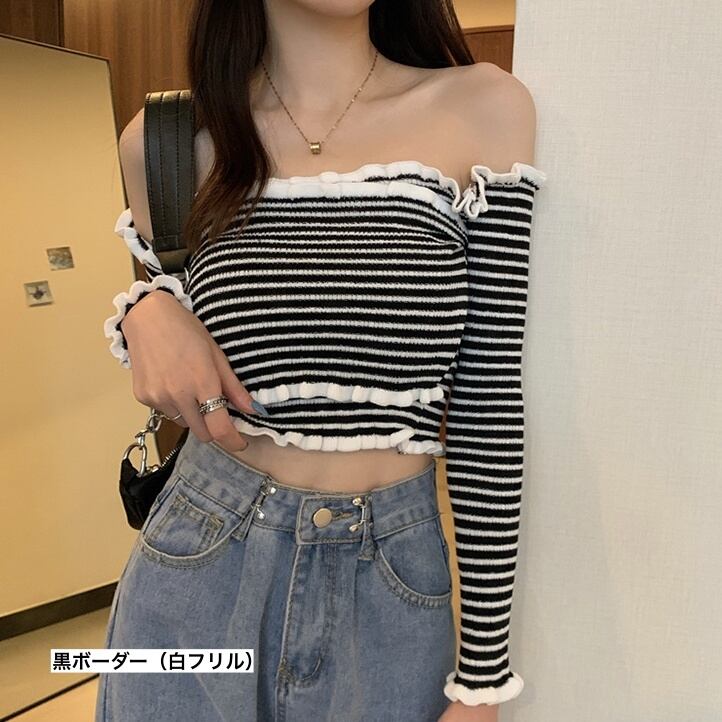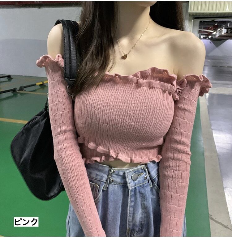 トップス レディース カットソー 長袖 無地 春 秋 冬 セミフレア フリル 伸縮性 かわいい 大人可愛い きれいめ シンプル カジュアル 大人 上品 おしゃれ お洒落 大人可愛い 大人女子 こなれ感 ラフ 個性的 とろみ感 オフショルダー ミニ 袖あり 白 ホワイト 黒 ブラック 赤 レッド イエロー ピンク くすみカラー ワンサイズ 20代 30代 学生 デート お出かけ 公園デビュー 女子会 休日 旅行 着回し 普段使い 韓国 韓国系 コーデ スタイル 送料無料 トレンド 流行 インスタ映え | Rena 韓国ファッション レディースアパレル