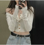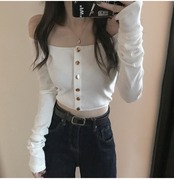 大胆に空いた首周りがセクシーな印象のオフショルダートップスです。