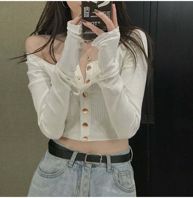 トップス レディース カットソー 長袖 無地 春 秋 冬 セミフレア フリル 伸縮性 かわいい 大人可愛い きれいめ シンプル カジュアル 大人 上品 おしゃれ お洒落 大人可愛い 大人女子 こなれ感 ラフ 個性的 とろみ感 オフショルダー 袖あり 白 ホワイト 黒 ブラック 青 ブルー ワンサイズ 20代 30代 学生 デート お出かけ 公園デビュー 女子会 休日 旅行 着回し 普段使い 韓国 韓国系 オルチャン ファッション コーデ スタイル モテ 送料無料 トレンド 流行 インスタ映え | Rena 韓国ファッション レディースアパレル
