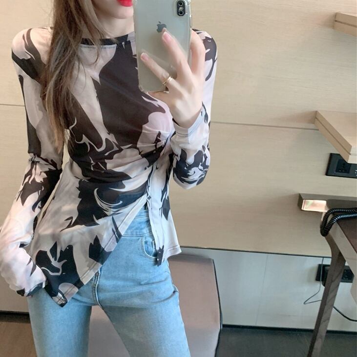 トップス レディース カットソー 長袖 柄 春 秋 冬 スリム タイト 細身 かわいい 大人可愛い きれいめ シンプル カジュアル 大人 上品 おしゃれ お洒落 レトロ 大人可愛い 大人女子 こなれ感 キュート ルーズ エレガント Uネック 袖あり くすみカラー 大人カラー ベイクドカラー S M L 20代 30代 学生 通学 デート お出かけ 女子会 休日 着回し 普段使い 韓国 韓国系 オルチャン ファッション コーデ スタイル モテ ギフト プチプラ 送料無料 トレンド 流行 インスタ映え | Rena 韓国ファッション レディースアパレル
