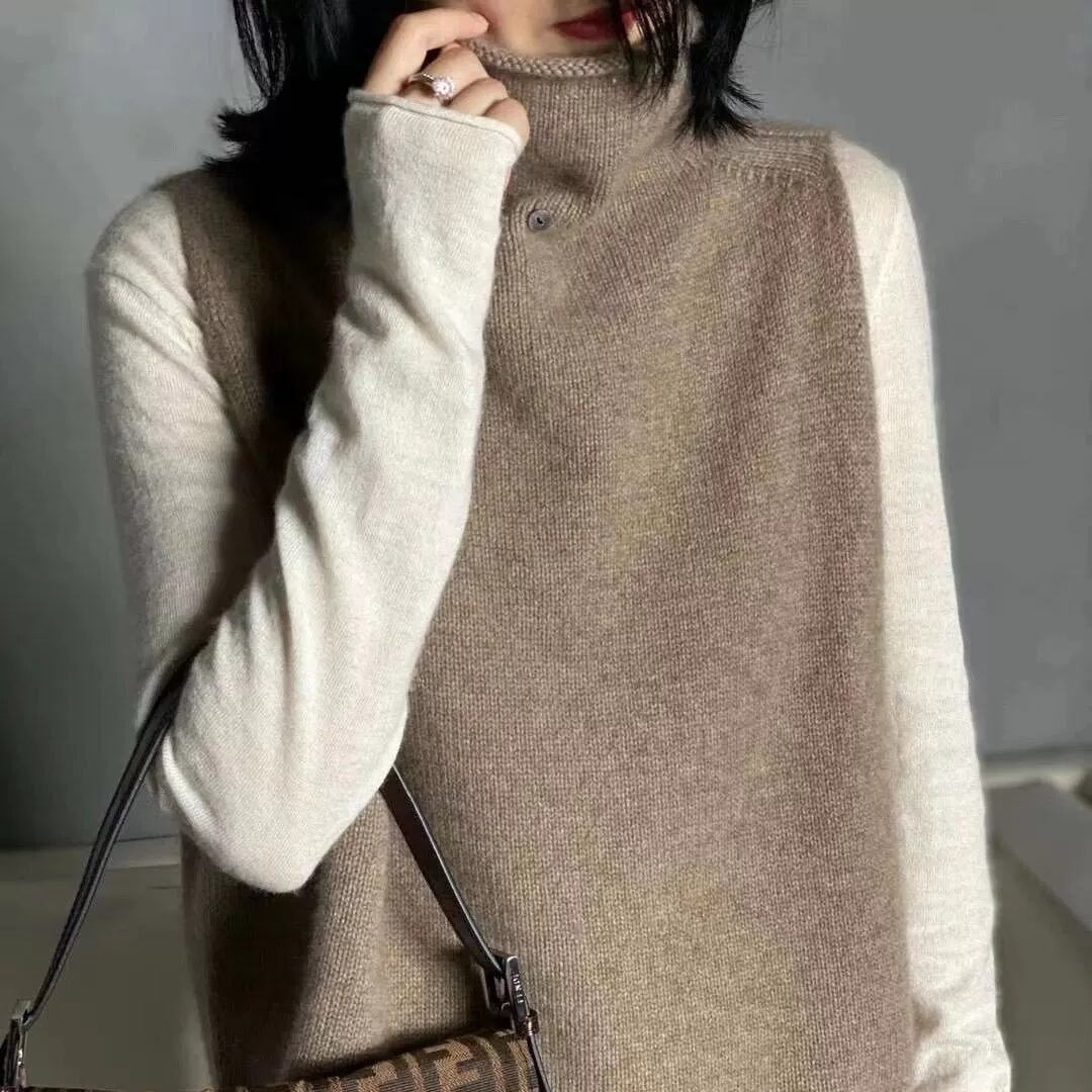 トップス レディース ニット ベスト ノースリーブ 無地 春 秋 冬 セミフレア プリーツ かわいい 大人可愛い きれいめ シンプル カジュアル 大人 上品 おしゃれ お洒落 レトロ 大人可愛い 大人女子 ラフ キュート タートルネック ミニ 袖なし 黒 ブラック 茶色 ブラウン 灰色 グレー ベージュ ベイクドカラー S M L XL 20代 30代 学生 通学 デート お出かけ 女子会 休日 着回し 普段使い 韓国 韓国系 オルチャン コーデ スタイル モテ 送料無料 トレンド 流行 インスタ映え | Rena 韓国ファッション レディースアパレル